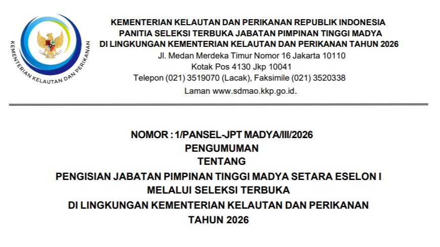 PENGISIAN JABATAN PIMPINAN TINGGI MADYA SETARA ESELON I MELALUI SELEKSI TERBUKA DI LINGKUNGAN KKP TAHUN 2026