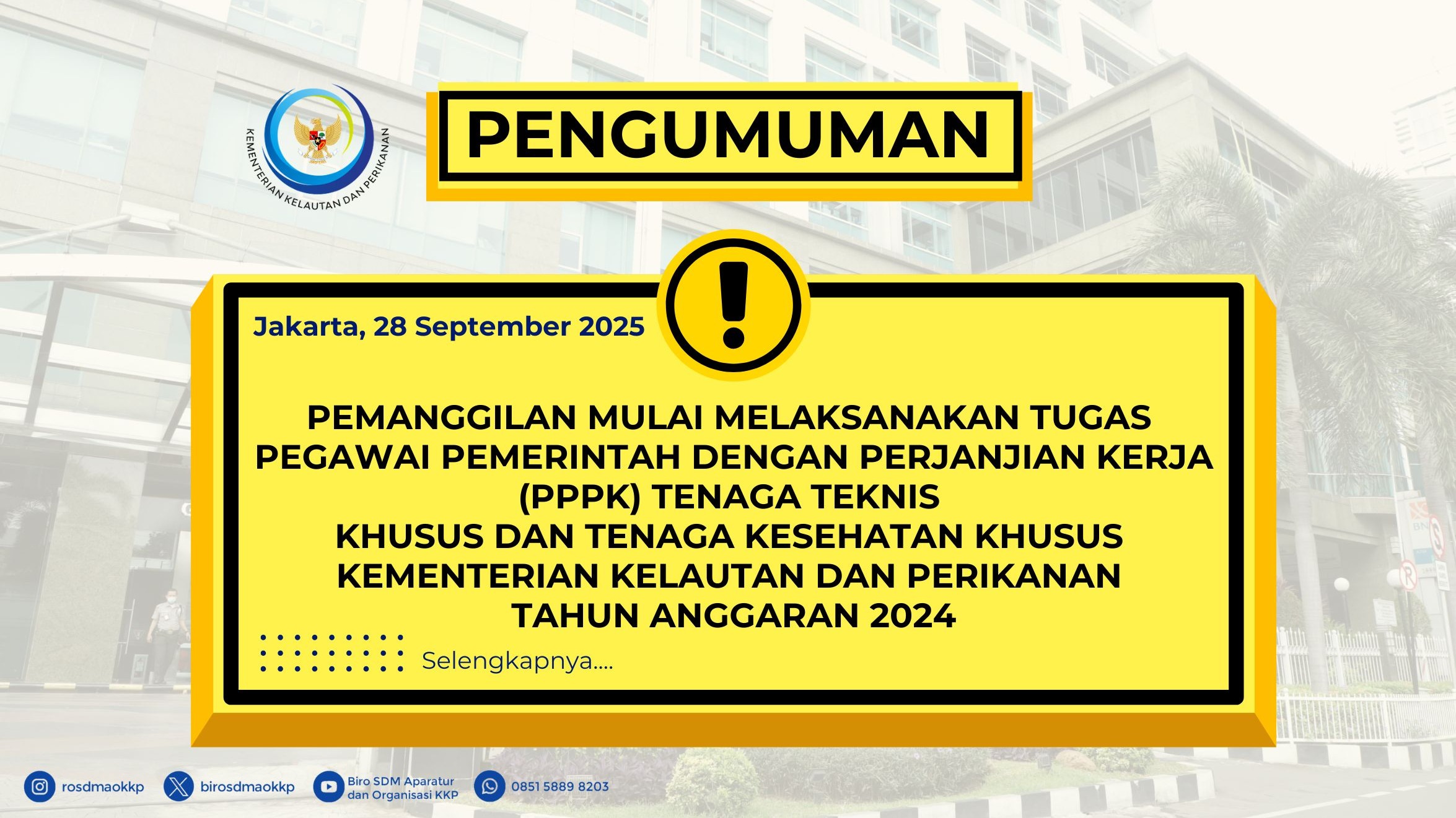 PEMANGGILAN MULAI MELAKSANAKAN TUGAS PPPK TENAGA TEKNIS KHUSUS DAN TENAGA KESEHATAN KHUSUS KEMENTERIAN KELAUTAN DAN PERIKANAN T.A. 2024